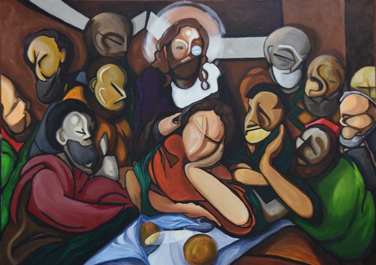 The painting I studied for this piece is “The Last Supper” by Jacopo Bassano (circa 1546). I love the emotion in the painting. The emotions I wanted to capture were of sadness, confusion and love. Pure love. When painting this piece I kept the apostles eyes closed because I think, like them, our faith is still looking for the evidence. Which is not faith at all. From John 13:36 – Simon Peter said to Him, “Lord, where are You going?” Jesus answered, “Where I go, you cannot follow Me now; but you will follow later.” 37Peter *said to Him, “Lord, why can I not follow You right now? I will lay down my life for You.” 38Jesus *answered, “Will you lay down your life for Me? Truly, truly, I say to you, a rooster will not crow until you deny Me three times.